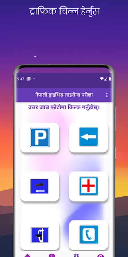 - Knowledge of traffic signs (ट्राफिक सङ्केत सम्बन्धी ज्ञान)