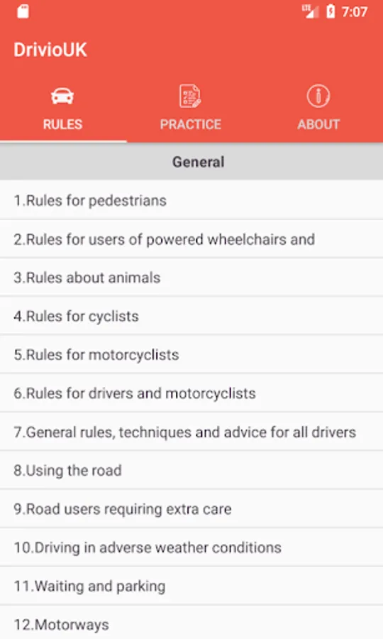 You can read and study all the topics of the Official Highway Code at your convenience. You don’t need to carry the book with you anymore and no internet access is required for this app.