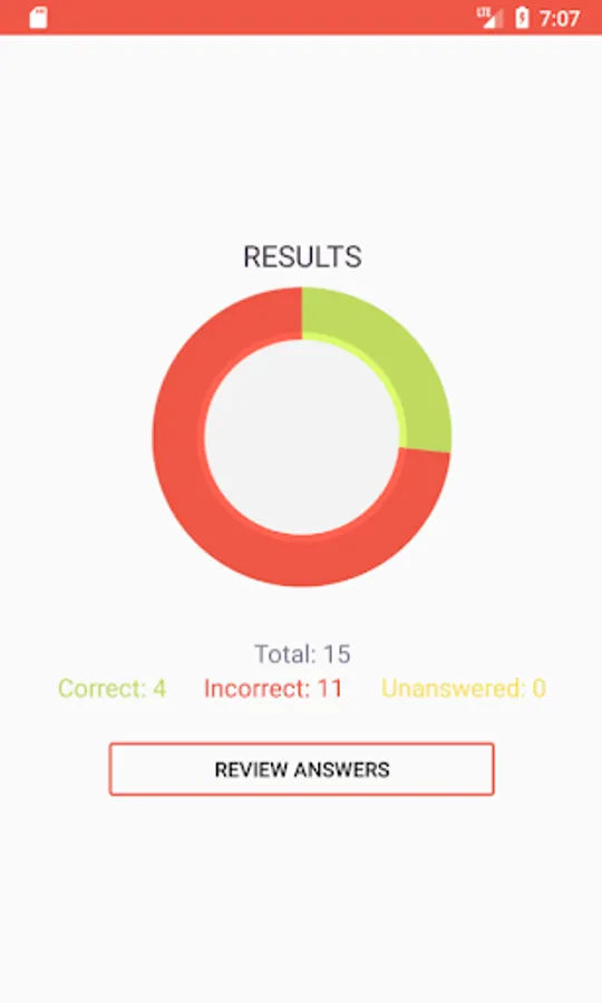 A summary of the practice test is presented at the end of each test. It shows you the score, which questions you answered correctly and where you were wrong.