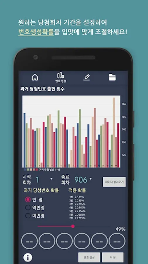 Lotto numbers are odds! Theoretically, you cannot raise your chances of winning in any way. So, in this app, you can generate numbers that apply the odds of past winning numbers! In addition, by setting the period of past winning numbers, it is possible to apply only specific sections to suit your taste.