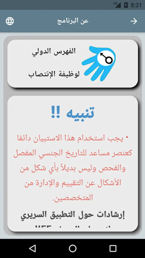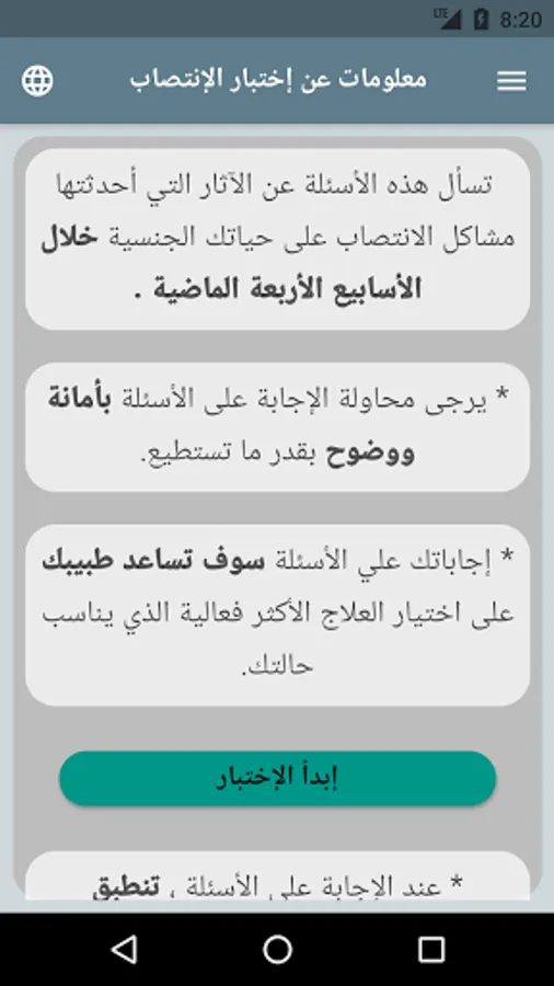 Important: This questionnaire does not replace the clinical examination, medical history, and debate by the specialized doctor in any way, and is used only for inference and to obtain a general idea of the person's sexual status.