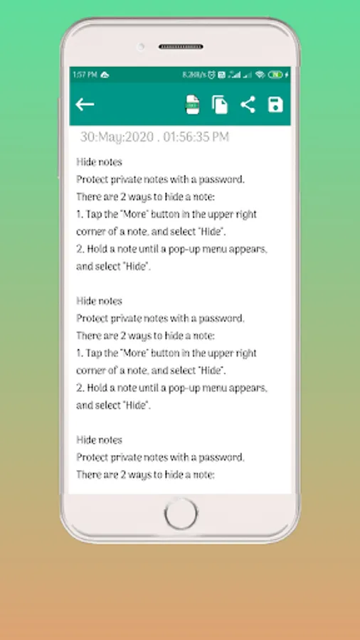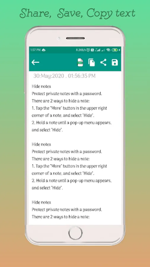 -You obtain your hands on not dependence to save your explanation in your memory past they are already saved automatically in a database on the subject of your Smartphone and will never be drifting unless you reseotes the phone.