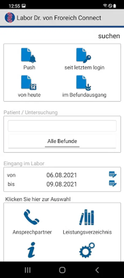 This app is the mobile Android version for your laboratory Dr. from Froreich Connect Account. This allows you to query and view the laboratory results of your patients online at any time and anywhere from the specialist laboratory. The findings are available to you up to about a year back.