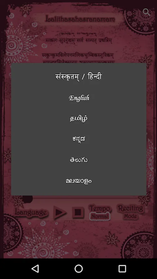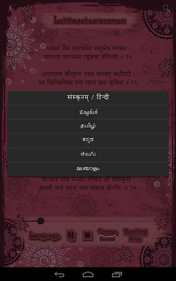 2. Multi language support (Sanskrit, English, Tamil, Kannada, Telugu, Malayalam and more to be included)