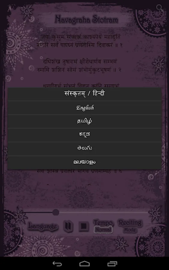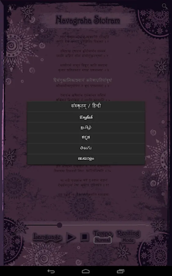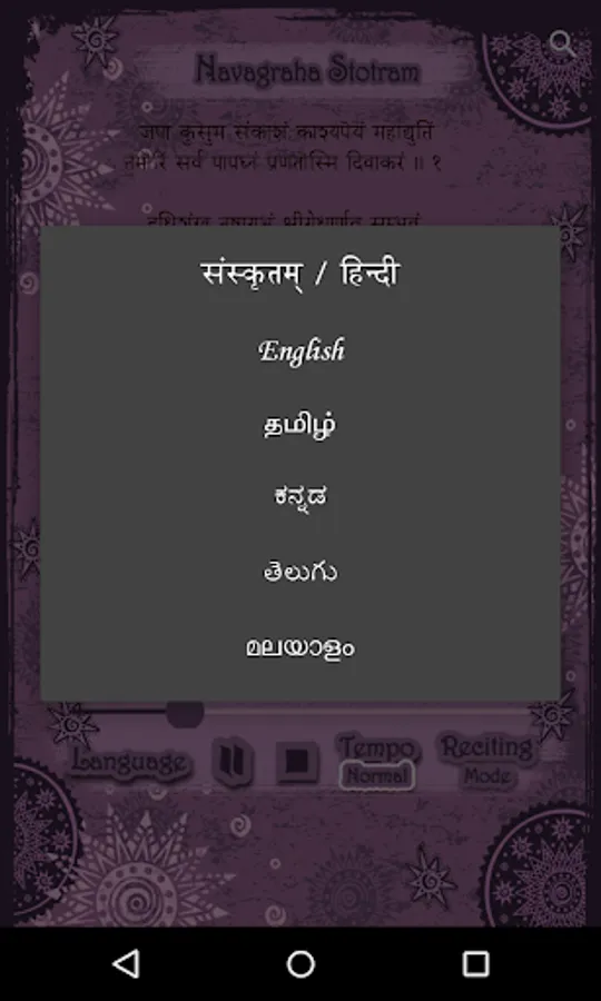 2. Multi language support (Sanskrit, English, Tamil, Kannada, Telugu, Malayalam and more to be included)