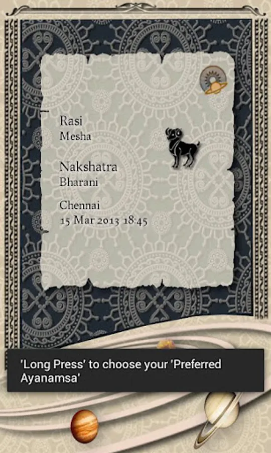 events in life. Basically, you would use this android app as a Rasi/Nakshatra Finder/Calculator.