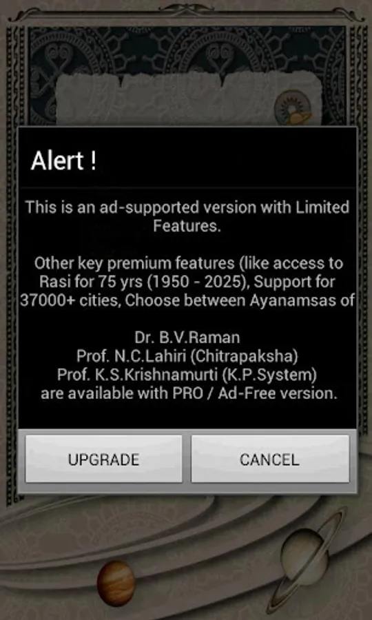 This app calculates your Rasi and Nakshatra based on B.V.Raman's Ayanamsa. If you get a different result from this calculator, please be informed that this is because