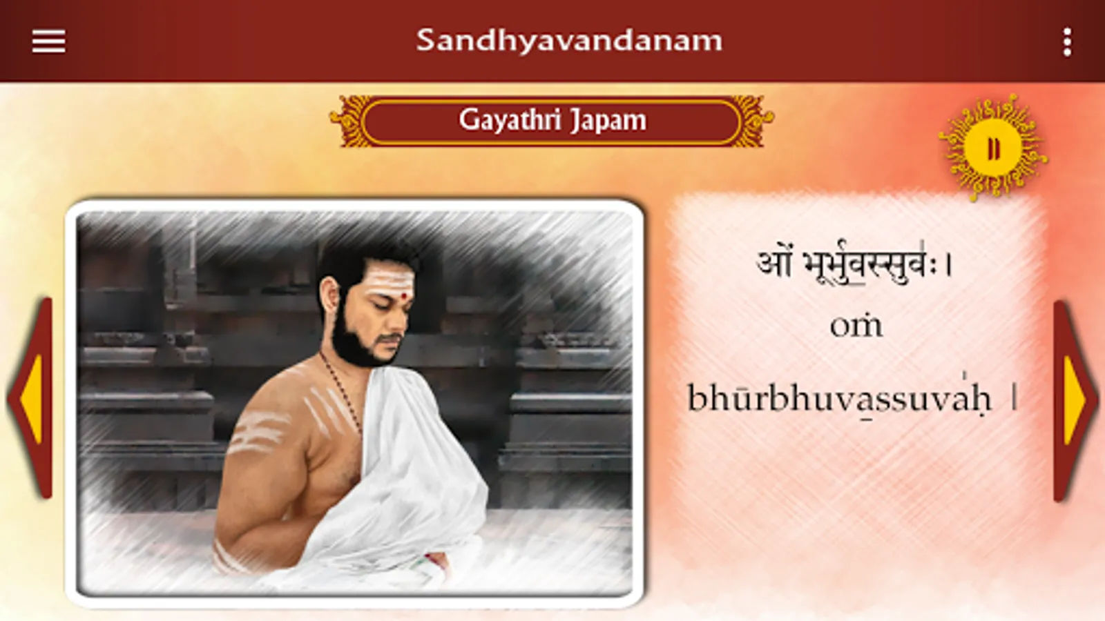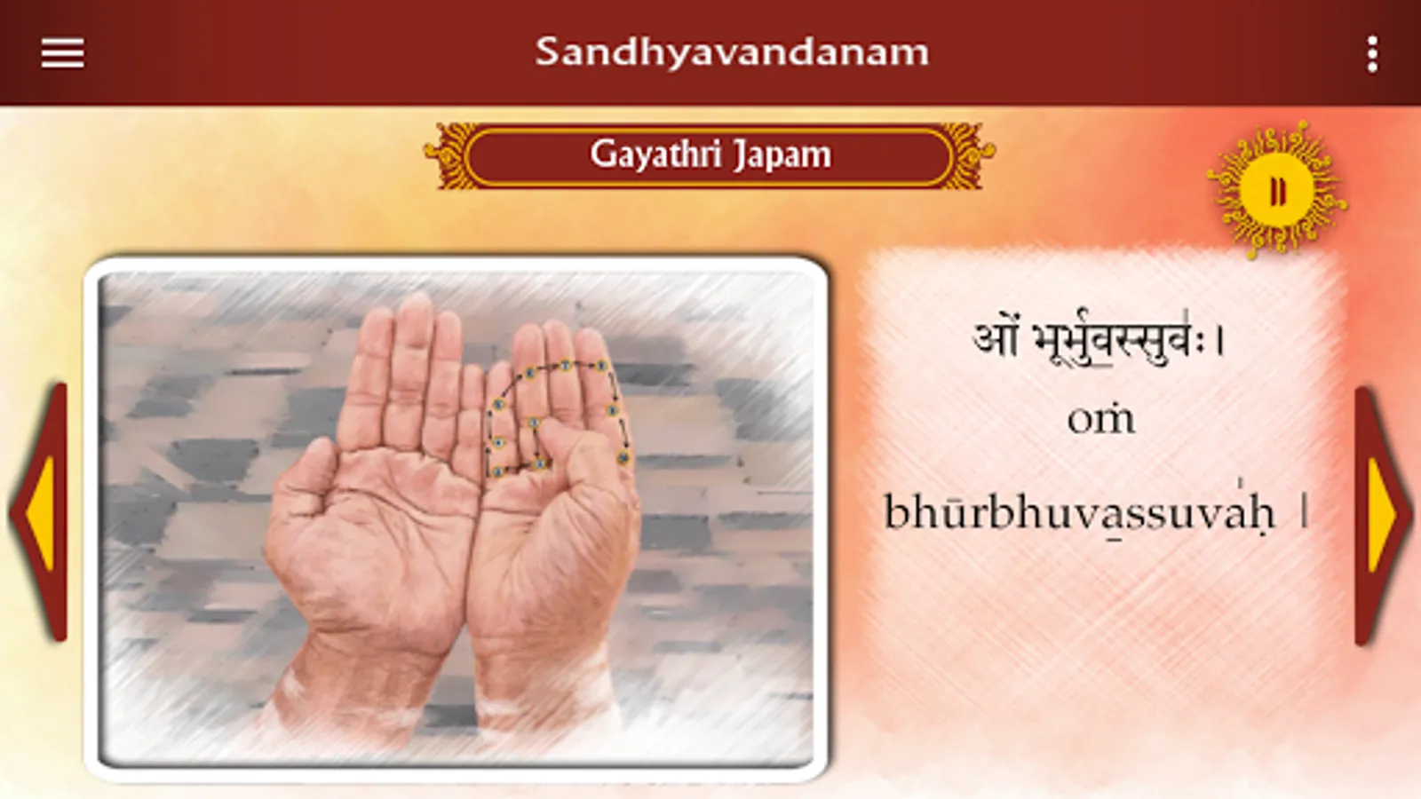 6) Play and pause control is provide to pause the flow of the ritual
