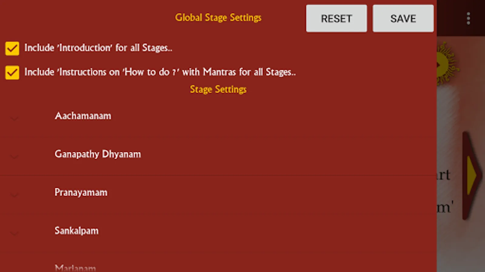 8) Options to choose between morning and evening Sandhya from the
