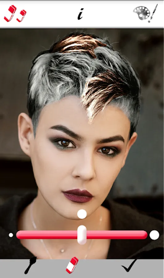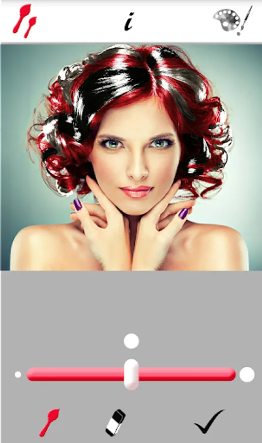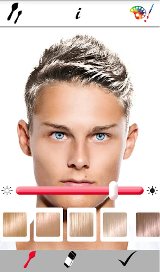 3 - Select the hair dye to be tested using the tool on the top right. You can change the color and brightness as many times as you want