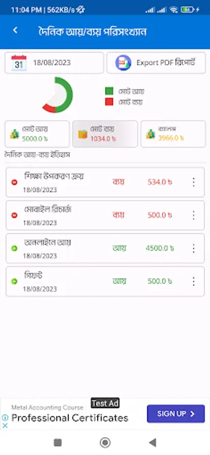 Accounts, is a daily income expense tracking app through which you can constantly track all your daily/monthly/yearly income and expense accounts. At the same time, you can easily export your account information to (Excel, PDF) file.