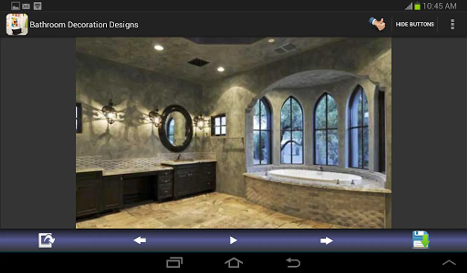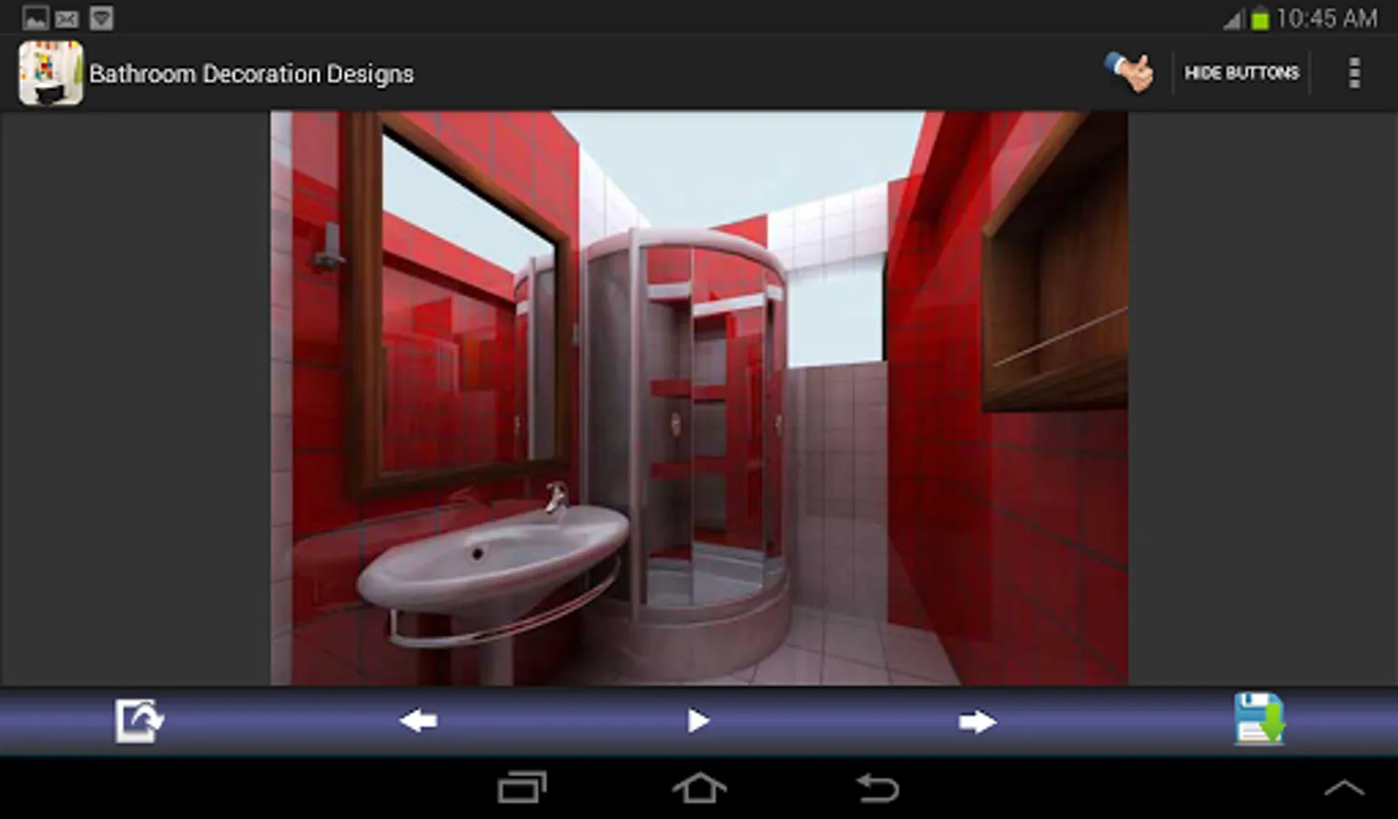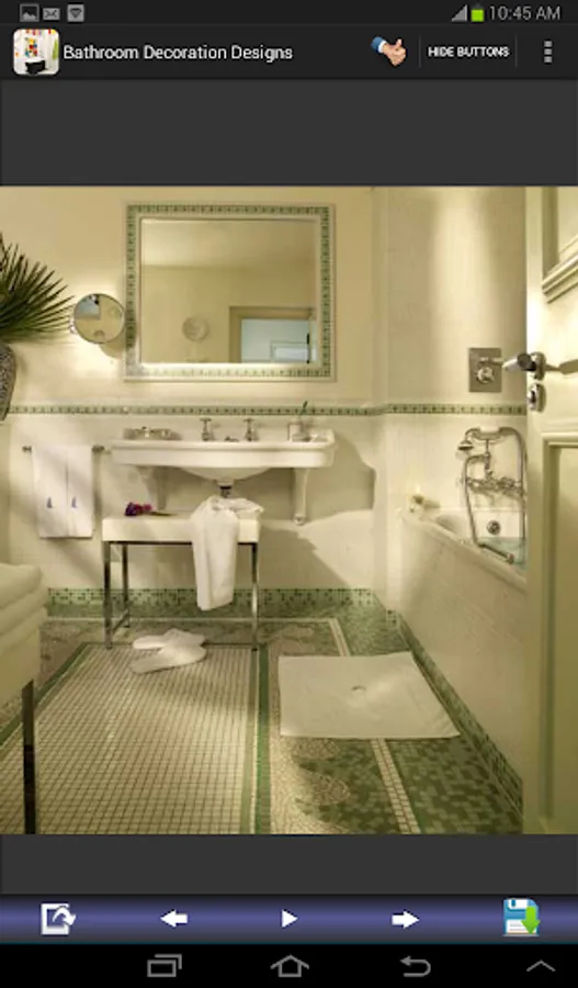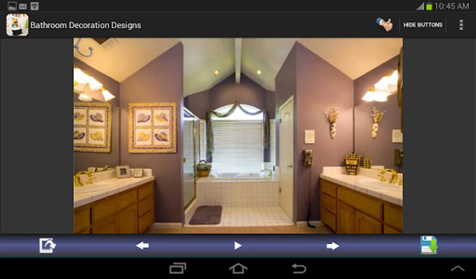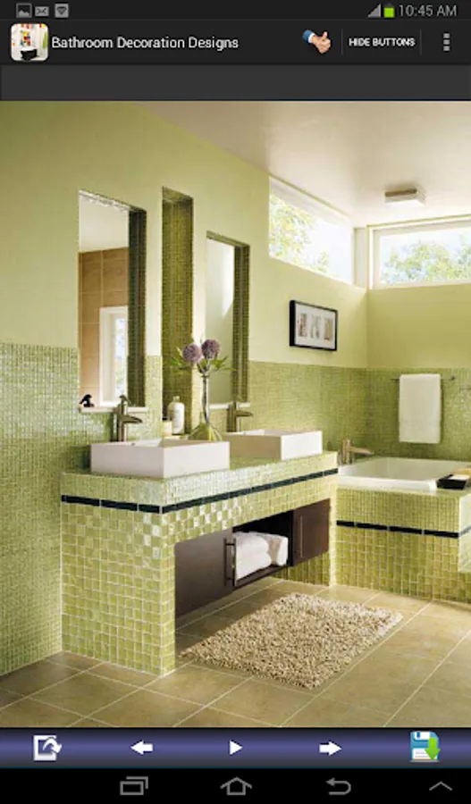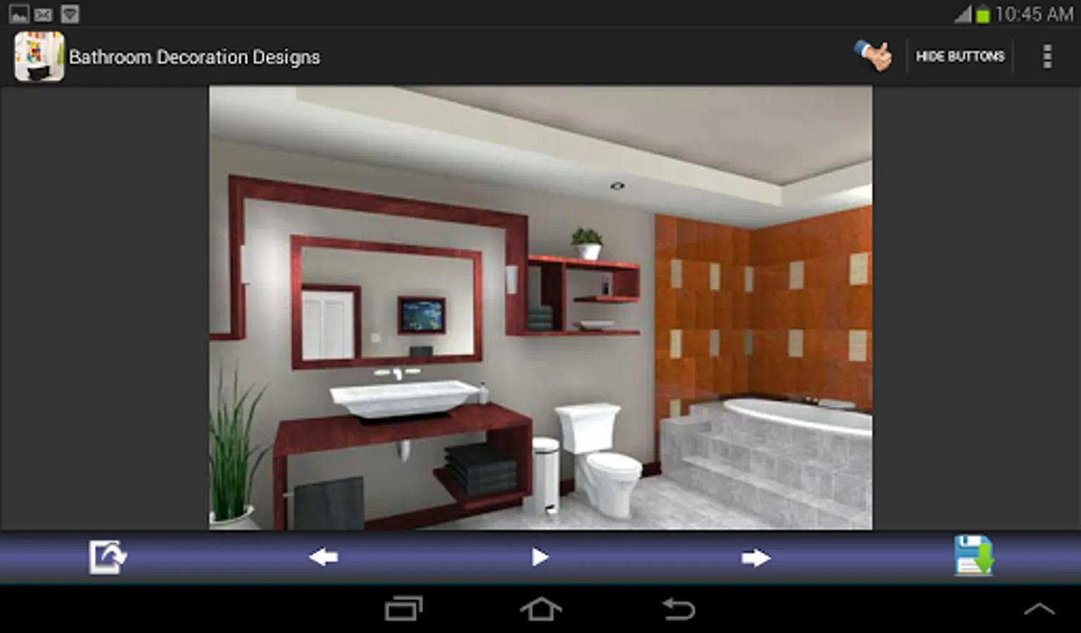 Bathroom decoration designs for you. You can save and share all bathroom decorating images. This application shows you the galleries of beautiful bathroom decoration ideas, designs for you. If you have on idea about your bathrooms, this application can guide you. This app. contains the various types of bathroom painting & decorating such as : small, for kids, contemporary, modern, luxury, elegant, tile, marble, master, mosaic, vintage, wood and more.