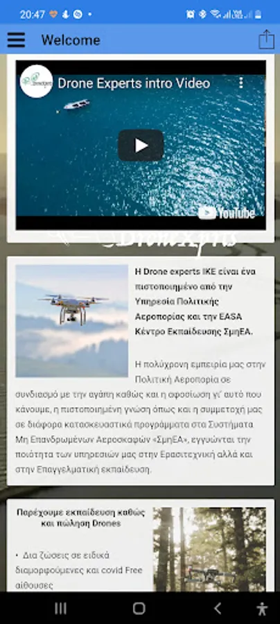 Drone experts IKE is a certified by the Civil Aviation Authority and the EASA Training Center SMEA. Our many years of experience in Civil Aviation combined with the love as well as the dedication for what we do, the certified knowledge as well as our participation in various construction programs in the Unmanned Aircraft Systems "SmEA", guarantee the quality of our services in Amateur but also in Vocational education.