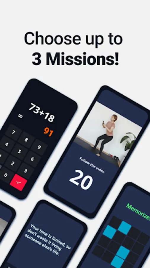 Pick the best sound: from soothing sound to powerful noise, not to mention your favorite music! Next, pick various missions to ensure you wake up and create your own morning routine. Now that you woke up refreshed, check your wake-up trend with our analysis and finish off by checking in your morning mood!