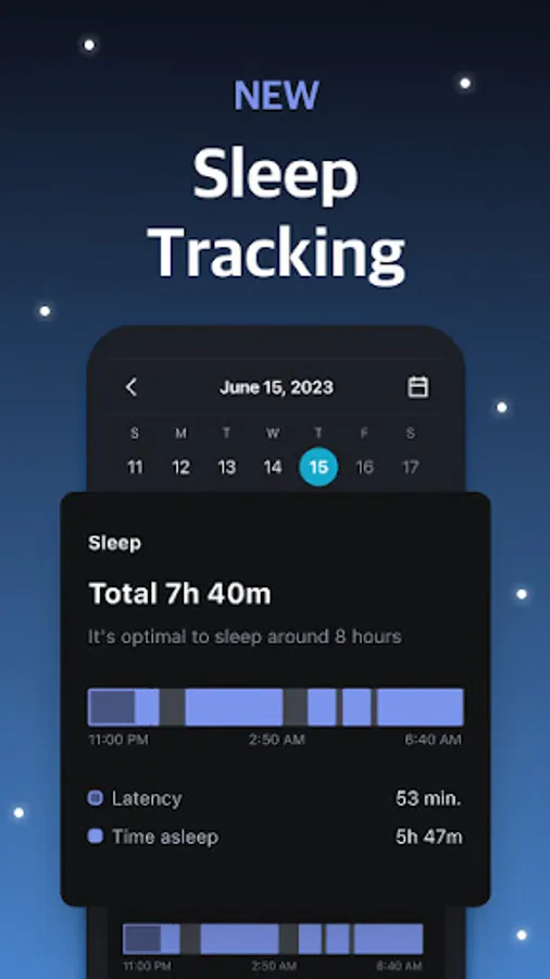 Get reminded on when to sleep with our bedtime reminder. Then, create an optimal sleep environment with various sleep sounds! By using the sleep tracking feature, you can check your sleep time and quality!