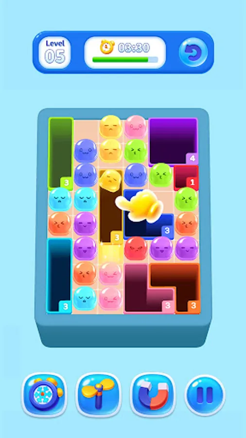 Each level challenges players to drag different shapes of colorful blocks to match and let the jelly drop away into corresponding colored areas. Sounds easy? Think again! As you progress, the levels become increasingly intricate, introducing convoluted paths, daunting block jams, and diverse barriers that test your wit and strategy. It’s not just about dragging and dropping; it’s about planning each move to perfection, giving way to an exhilarating color sorting and puzzle-solving fest!