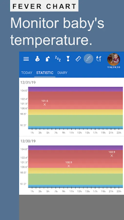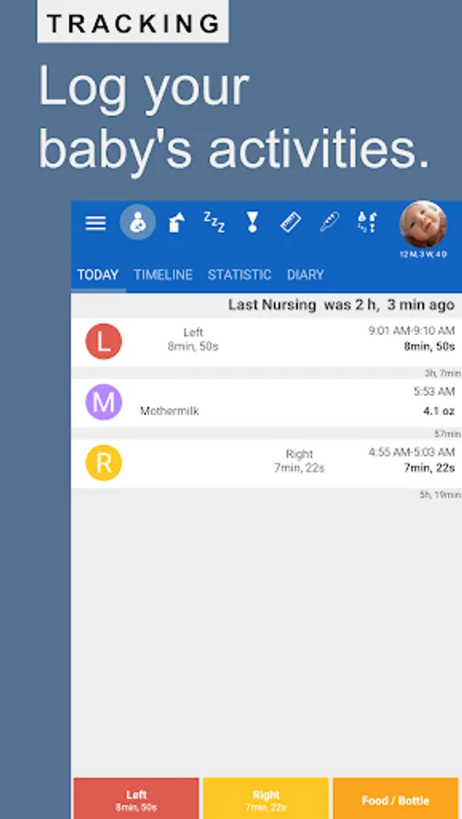 While the free application started with the focus of being a logger for breastfeeding, over time you might want to use it as a real baby tracker to log all kind of different events: