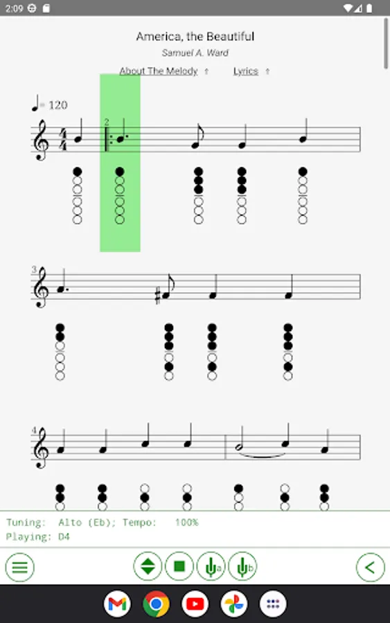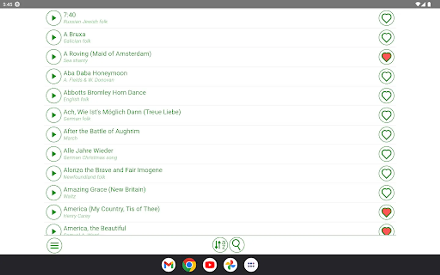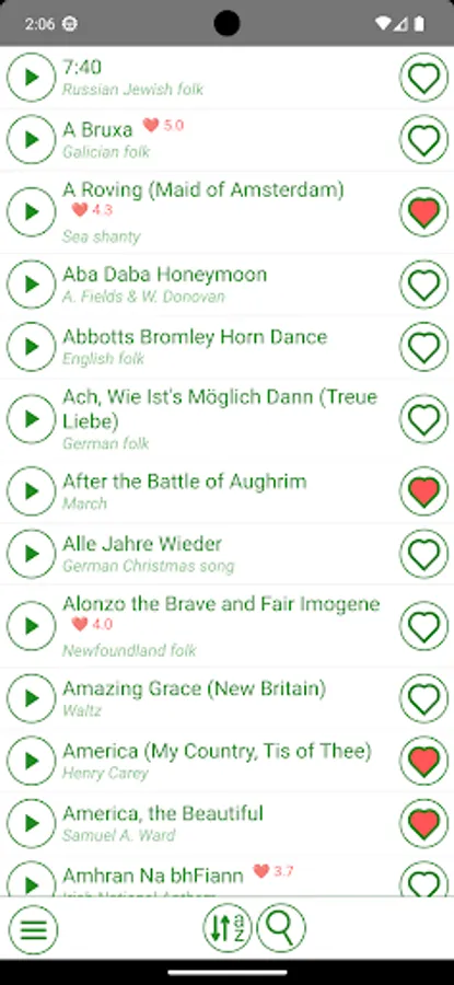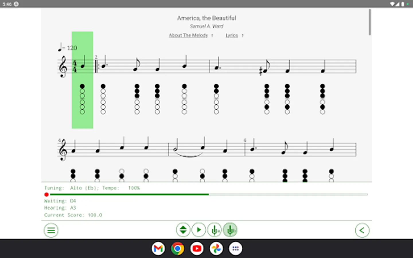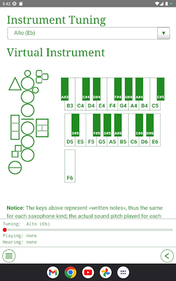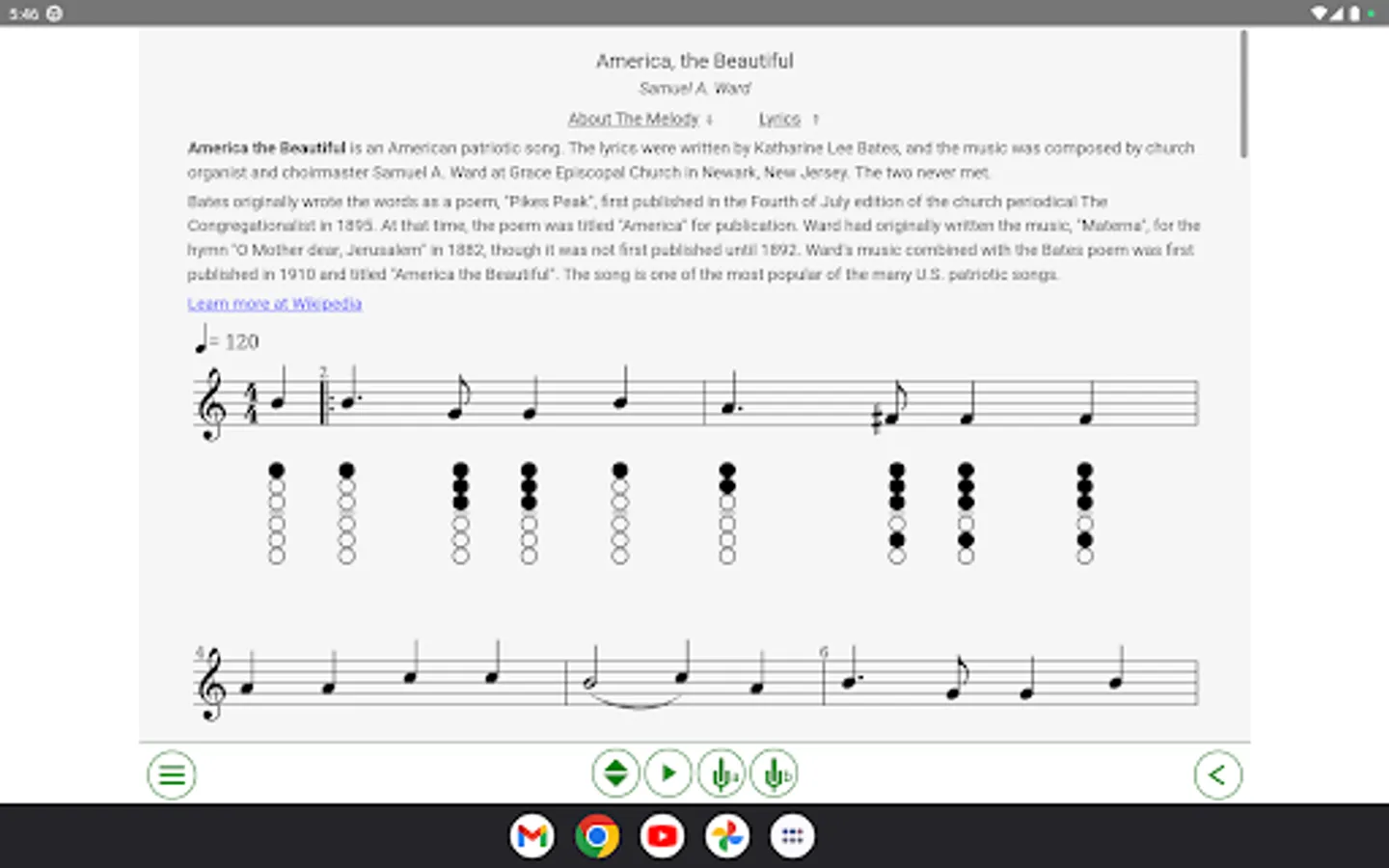 Sheet music with notes, tablatures, and interactive training for saxophones of different kinds. This app helps learning to play popular traditional melodies, and some other tunes from the public domain.