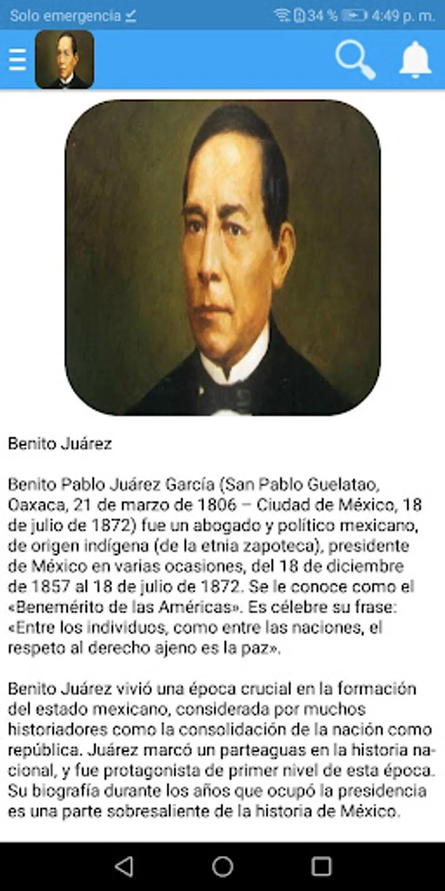 Benito Pablo Juárez García (San Pablo Guelatao, Oaxaca, March 21, 1806 - Mexico City, July 18, 1872) was a Mexican lawyer and politician, of indigenous origin (of the Zapotec ethnic group), president of Mexico on several occasions , from December 18, 1857 to July 18, 1872. He is known as the "Meritorious of the Americas." His phrase is famous: "Among individuals, as among nations, respect for the rights of others is peace."