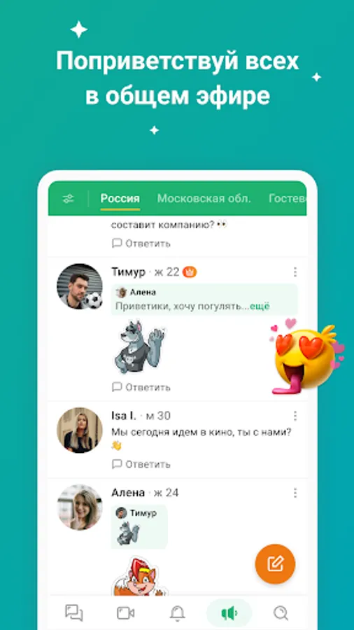 In the Friend Around chat you can find new friends, it is easy to make acquaintances in your city, next to you! Attractive girls and funny guys are always online, ready to chat and meet right now: just write Hello to them!