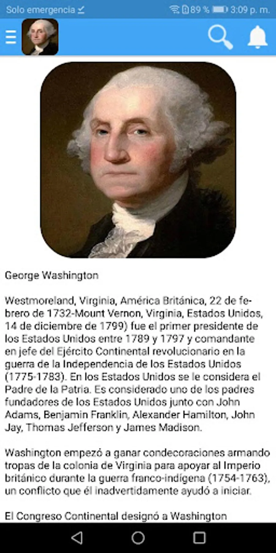 Westmoreland, Virginia, British America, February 22, 1732-Mount Vernon, Virginia, United States, December 14, 1799) was the first president of the United States between 1789 and 1797 and commander-in-chief of the revolutionary Continental Army in the War of Independence of the United States (1775-1783). In the United States, he is considered the Father of the Fatherland.He is considered one of the founding fathers of the United States along with John Adams, Benjamin Franklin, Alexander Hamilton, John Jay, Thomas Jefferson and James Madison.