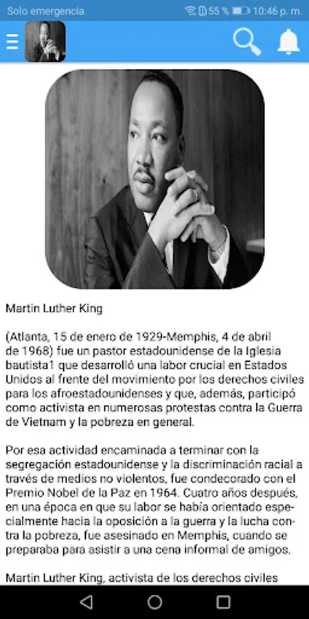 (Atlanta, January 15, 1929-Memphis, April 4, 1968) was an American pastor of the Baptist Church1 who carried out crucial work in the United States at the head of the civil rights movement for African-Americans and who also participated as an activist in numerous protests against the Vietnam War and poverty in general.