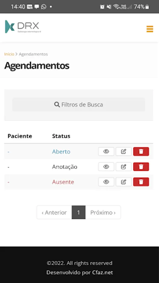It is also possible to make appointments, PEP (Electronic Patient Record), Integration with any equipment that uses the DICOM protocol (PACS/Worklist), Financial Management, Control of Agreements and Glosses, everything can be accessed from anywhere by the clinic administrators.