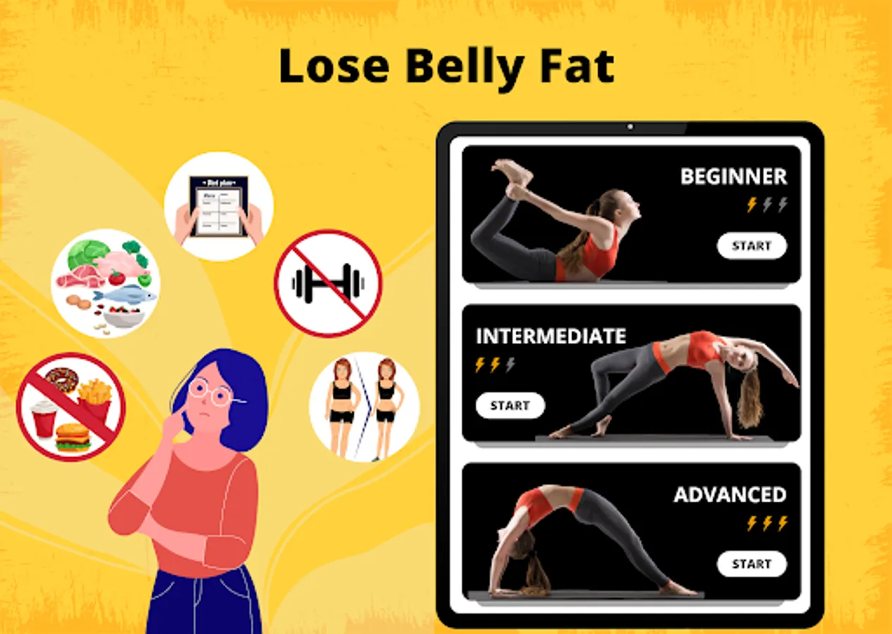 This belly fat-burning exercise app is your virtual personal trainer in your pocket at home.