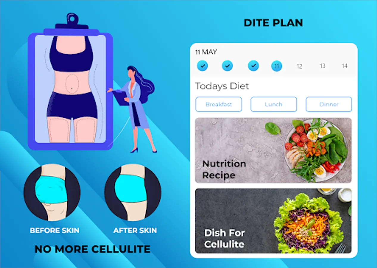 Certain food/nutrition decrease the level of stress on the body and improve blood circulation in lower limbs which help reduce stored fats or lumps (cellulitis). Diet having a high level of Essential Fatty Acids (EFAs) can help to keep the skin strong, soft and stretchy. Few potassium rich diets reduces water retention (reason for “Orange peel skin”) & eliminates toxins from lymphatic system. Antioxidants play vital role in breaking down free radicals and toxins. Vitamin C boost collagen levels to make your skin stronger and tauter leading to cellulite reduction. Many such nutritional formulas are added in this app.