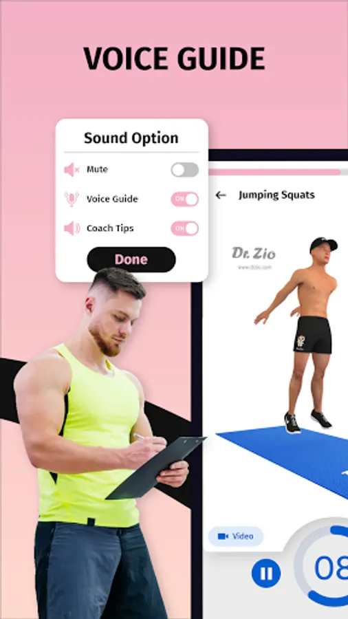 - Demonstrating every step of exercise in 3D videos with voice guidance for women