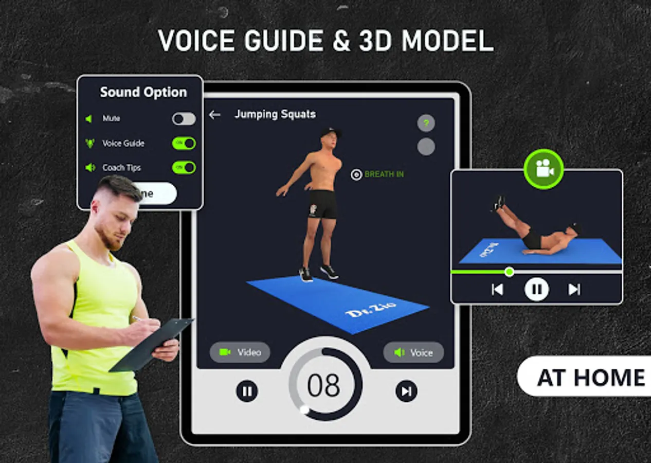 - Demonstrating every step of exercise in 3D videos with voice guidance for beginners