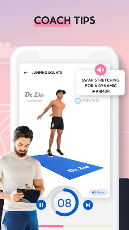 • Demonstrating every step of exercise in 3D videos with voice guidance for beginners
