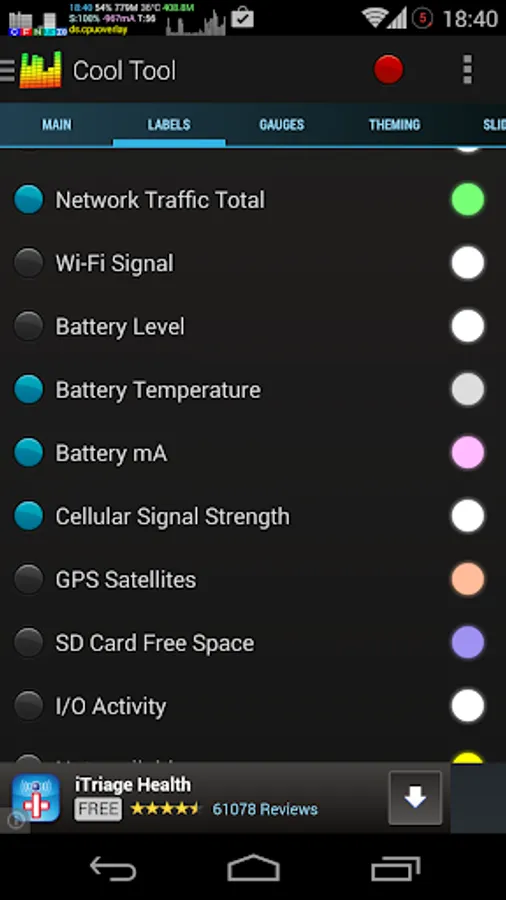 Tons of gauges could drain your battery very quickly. Uncheck the features that you do not need. Btw, Cool Tool went to sleep and do not draw anything when your display turns off. It is for power save.