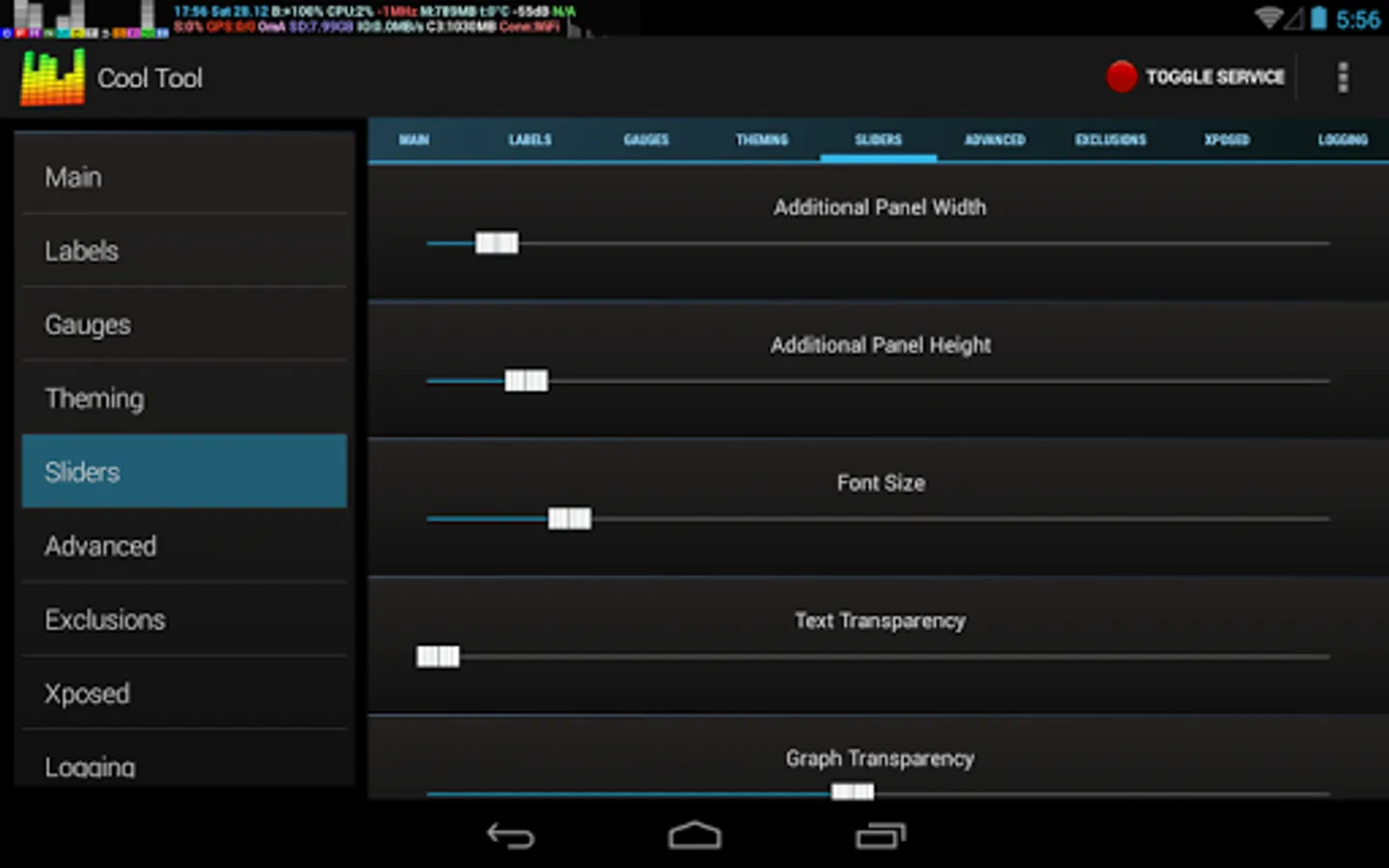 Customize the appearance of the panel using color picker dialogs. Also you can adjust transparency and size of the panel in Sliders section.
