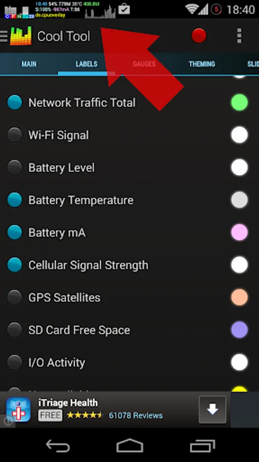 Tons of gauges could drain your battery very quickly. Uncheck the features that you do not need. Btw, Cool Tool went to sleep and do not draw anything when your display turns off. It is for power save.
