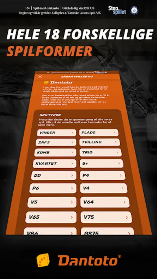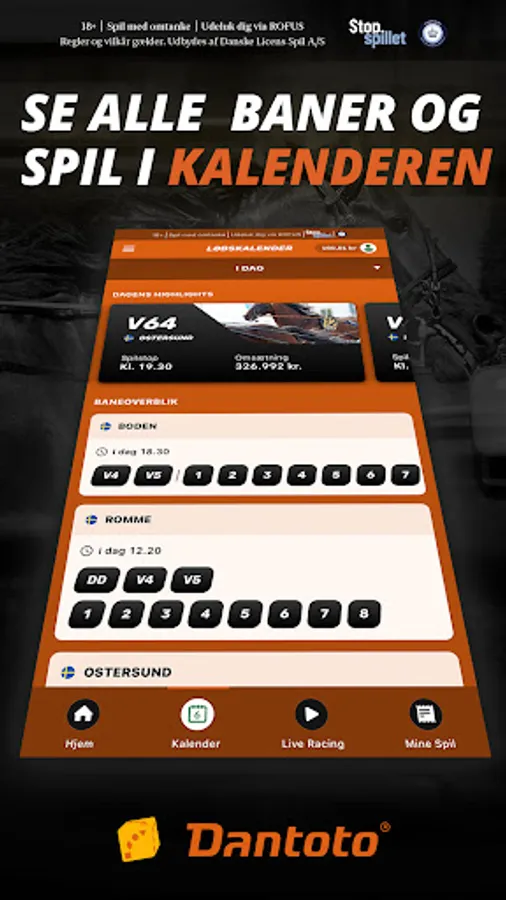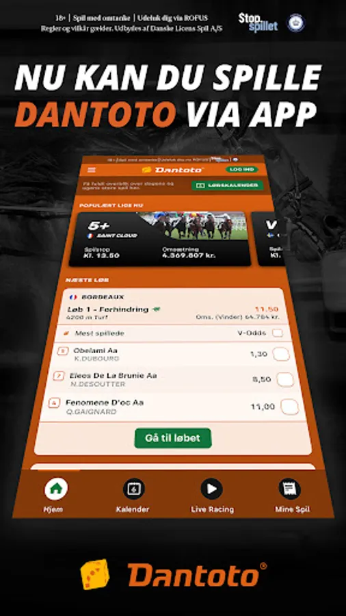 Dantoto app is Danske Spil's app for betting on horses online. With the app you can find horse racing from all over the world. There are horse odds for everyone. You can bet on the winner of one race in pursuit of the big million prize. In the hunt for the million, it is about finding more winners.