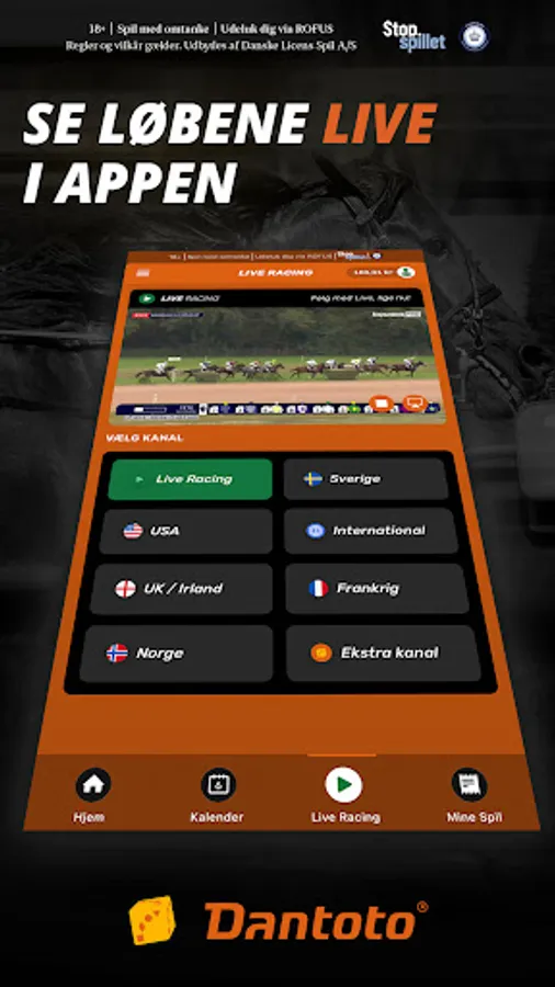 At Dantoto you get live odds and live games most of the day, so you can easily and quickly play from second to second. You can make the odds live on international major races around the world. You can also follow most races live with live streaming in the Dantoto app. You can watch the races separately or through the Racing Live channel both on mobile phones and tablets.