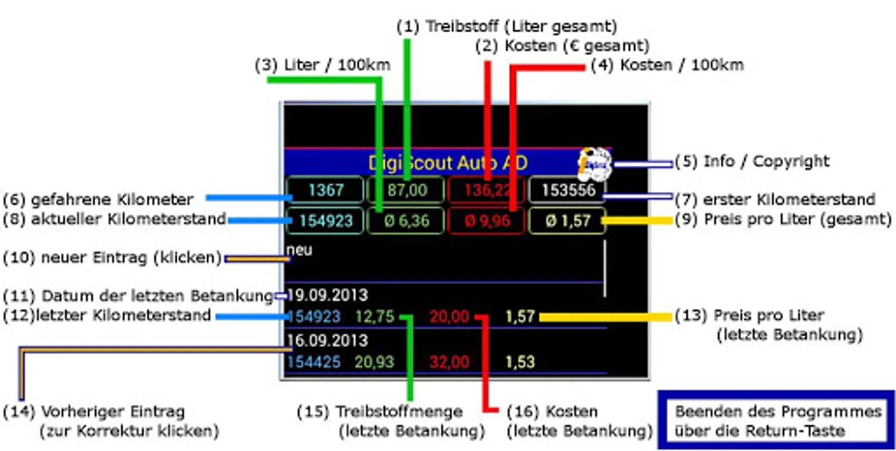 Create yourself with this small application to easily create a survey for refueling your car. Enter the date, liters and price, and you get the same information to the average consumption in liters per 100km or €.