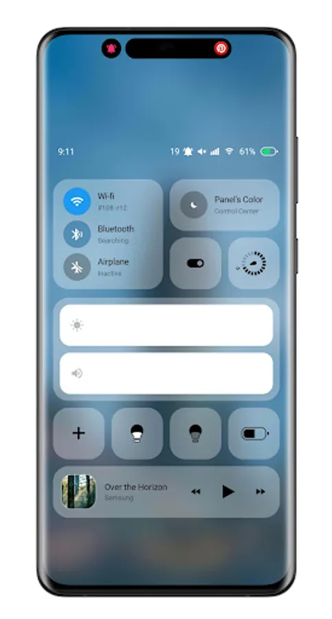 + You can adjust the media volume and brightness of wallpapers by touching the bars widgets. Left for reducing, right for increasing.