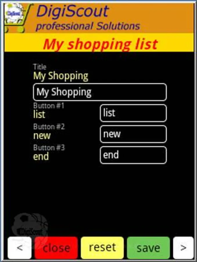 Using the info-button (DigiScout Logo with the "i") you will get to the impressum where you can chose between erman, Engish, Dutch, and "- ? -" - your own language that you may want to change the titles and button names to. Just click on "change" and you can click through the menus where you can make the changes.