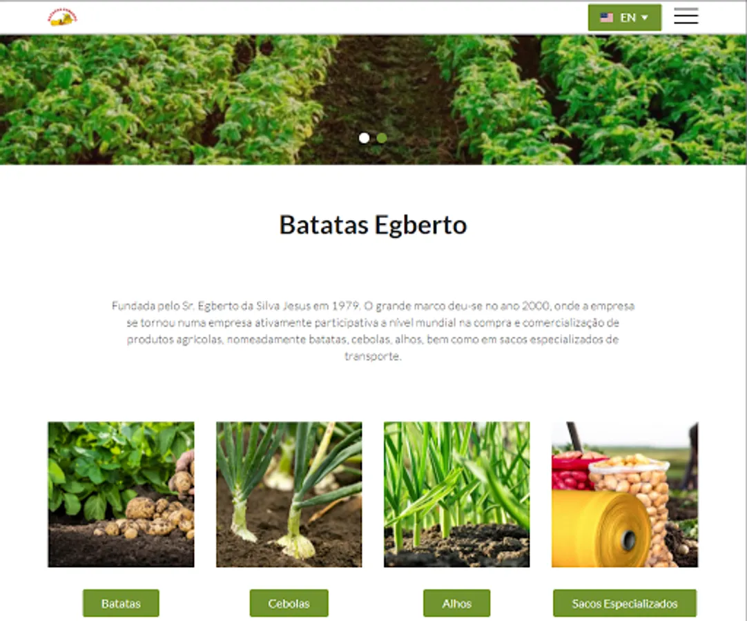 Since 2000, the company Batatas Egberto, Lda. Has become an actively participating company worldwide in the purchase and commercialization of agricultural products, namely potatoes, onions, garlic, as well as in the respective specialized transport bags.