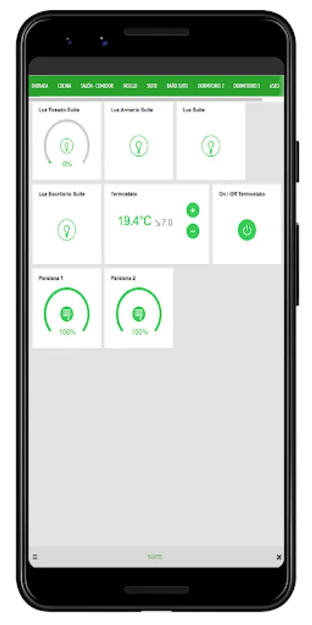 Depending on the KNX devices installed and their configuration, you can control the lighting, weather, blinds, generate schedules, view trends, etc.