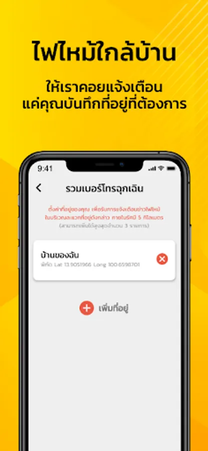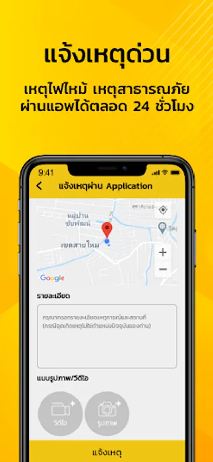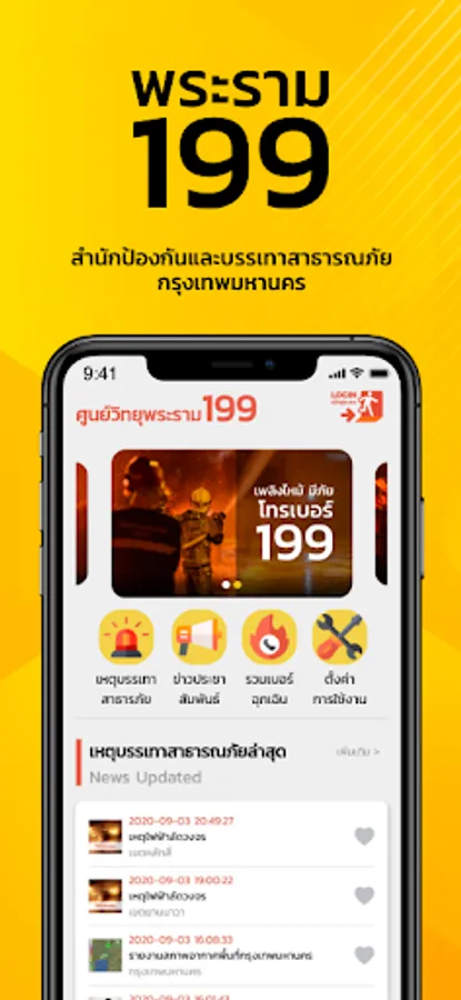 Application to notify urgently via smart phone devices For the general public (Only Bangkok area), able to report an urgent incident, request assistance from the staff By just sending the incident photos of the scene location Which has staff waiting to accept matters To coordinate help at any time In addition, you can view event photos, send photos and videos of the event, including receiving news releases, news of events along with new functions. Fire alerts near the house Or the radius area where you are at that time
