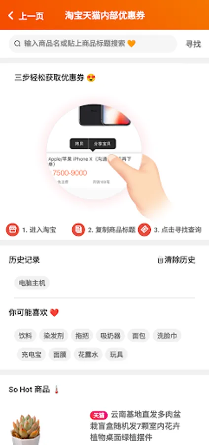 Note: This application can be used without logging in, and it needs to be used in conjunction with mobile phone Taobao. Taobao and Tmall coupon search functions are the main functions of this App, and Pinduoduo and JD.com coupons will be launched from time to time.