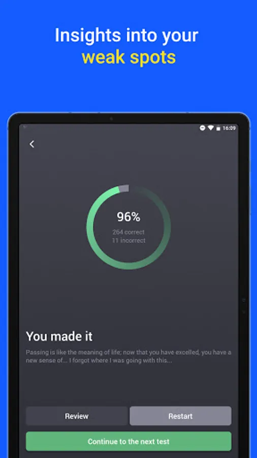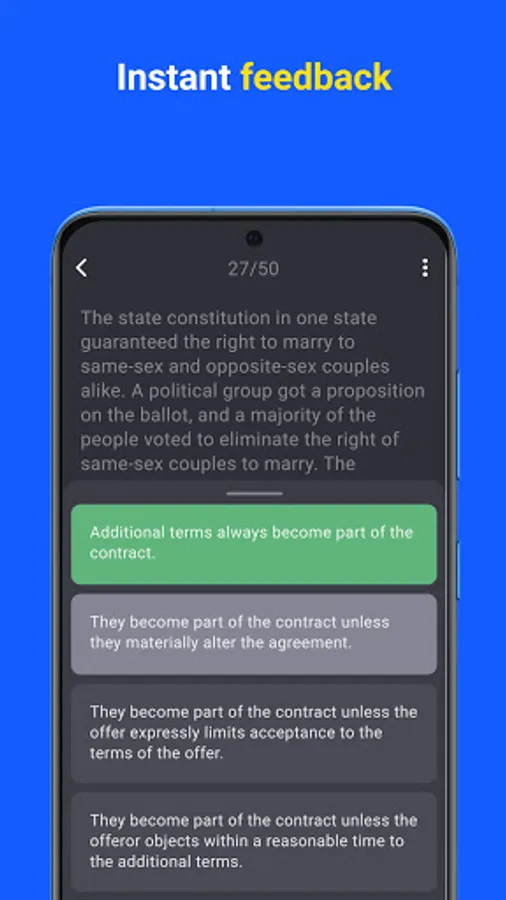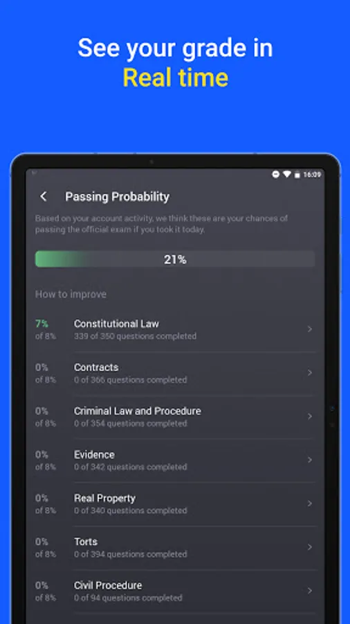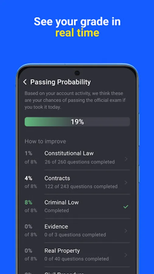 Practice with real questions anytime, anywhere. When you have to rush out of the house. Or you’re on your phone waiting for an appointment. Or it’s late at night, and your eyes are burning. Take BarPrepHero on the train. Into the doctor’s office. With you to bed.