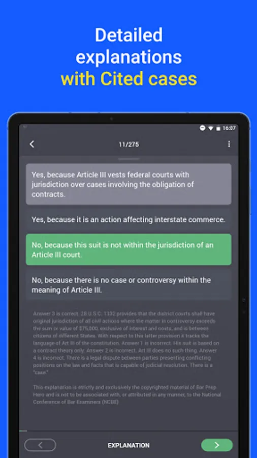 You’ll unlock over 1,700+ real, NCBE-licensed MBE questions from past exams (every question ever released), plus 500+ simulated MBEs exclusive to Bar Prep Hero that you won't find anywhere else. Most questions come with a detailed rationale and a cited case.