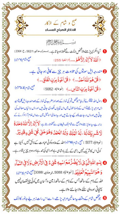 Dua and Azkar: Subah Sham ke Azkar ( أذكار الصباح والمساء) is one of the most authentic Islamic dua app for Muslims. This Daily supplication and morning-evening zikar Azkar app (صبح شام کے اذکار ) play a very important role in your life, it protects you. This Dua & Zikr : Masnoon Duain app contains Aytal Kurshi (آية الكرسي ) and Sleeping Azkar, Sonay ki Doa which is the best bedtime supplication for you and protects yourself. This Islamic zikr Azkar (ذكر - أذكار) app contains Black magic Jadu ki Duain (جادو کی دعا) and complete Islamic wazaif (وازيف الاسلامية) for those peoples who have the problems due to black magic and kala Jadu. Dua & azkar (hisnul muslim) is a complete combination of different supplication like Hajat ki Dua, Nazar e bad ki dua ( نظر بد کی دعا), Haaj umrah ki Duain (حج و عمرہ کی دعا), Hajj and Umrah guidance, hifazat ki dua. Suba Sham ke Azkar (صبح شام کی دعائیں) provides Ayat e Shifa and Dua e Shifa which is the most powerful weapon for a believer. Shifa ke Dua and Ayat e Shifa (دعاء الشفاء) is the doa to overcome an illness.
