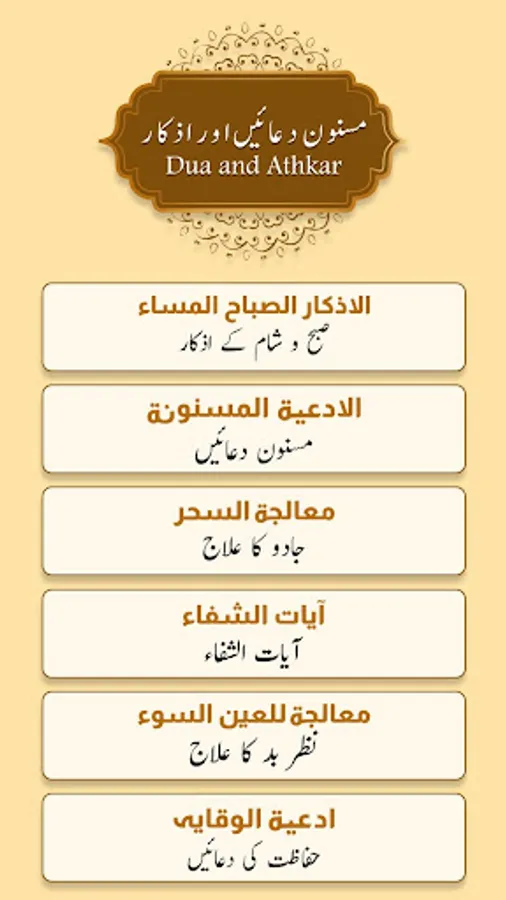 Dua & Azkar( دعا ازکار) is an Islamic app that provides Islamic duas, Islamic wazaif (وازيف الاسلامية) and masnoon duain. This Dua and Azkar app (hisnul muslim) containing daily supplication (روزانہ کی دعا) and Qurani duas for Muslim. The concept of masnoon duain and wazaif is drawn from Quran e Pak and Holy Hadith. Islamic wazaef and Islamic duain are special doas that are considered powerful and blessing for the Muslims. This dua & Ziker app is a collection of 100+ Qurani masnoon duain and Islamic zikar Azkar ( أذكار ذِكْر). If you are searching for Islamic apps and masnoon duain (مسنون دعائیں) then this is the best Islamic dua and Azkar app for you. Muslims should recite zikar Azkar and Dua & Zikr for health, Dua before going to sleep, dua for waking up (دعاء الصباح), dua before eating, dua for exam, dua for sick peoples, duain for success and supplication for hajj and umrah (صلاة الحج والعمرة)etc. Read dua and wazaif in morning and evening (اذكار الصباح والمساء) with Arabic and Urdu Translations. This Daily doa app and Dua & Askar has a clear and easy Arabic and Urdu text for reading.