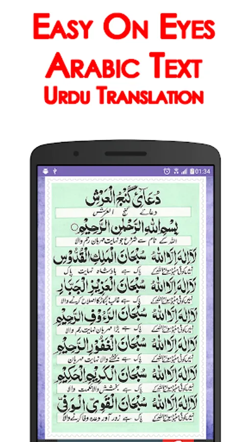 This Dua-e-Ganjul Arsh is a gift for everyone who wants to read Dua like they do on regular paper version. It is easy on eyes and is with Urdu translation.