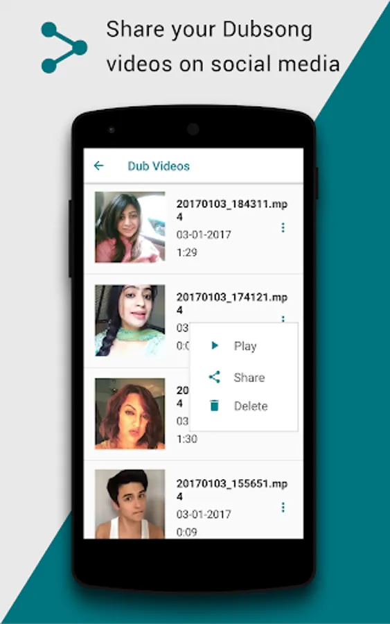 With Dub Bollywood Songs, it is very easy to make fun lip videos to share with your friends. On your own imagination, you can make your own dub videos on Bollywood songs. We also update our songs daily. You can record your video very easily. You can do dub on new and old Bollywood songs. You can also dub on full Bollywood songs or any part of Bollywood songs. Our songs list is auto- updated so you always get to see the latest and most recent Dub Songs videos. This app provides a large collection of Bollywood songs having many categories and collects all the best Bollywood songs from all Indian Movies.